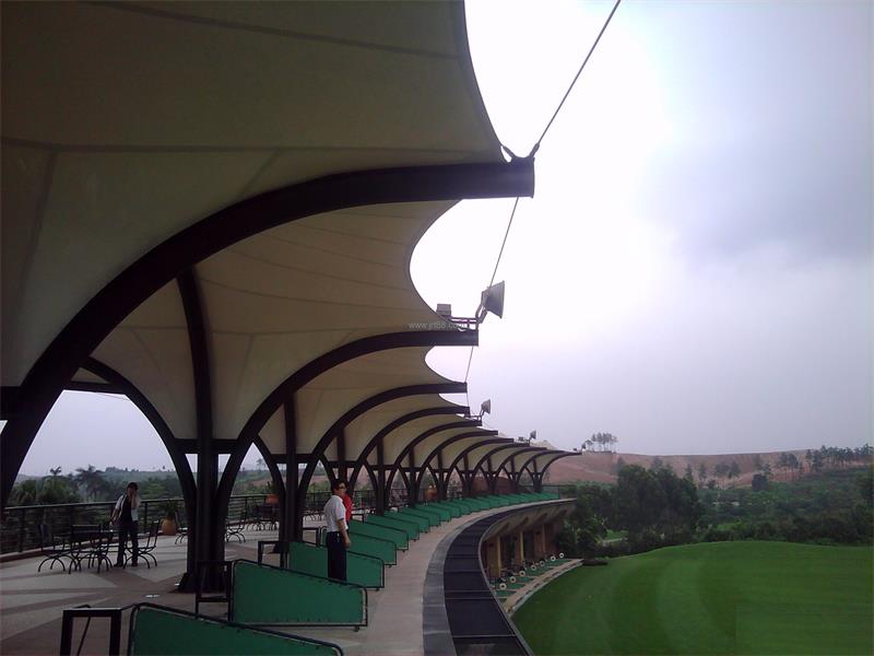 膜结构(Membrane Structures)是20世纪中期发展起来的一种新型建筑结构形式,是由多种高强薄膜材料(PVC或Teflon)及 加强构件(钢架、钢柱或钢索)通过一定方式使其内部产生一定的预张应力以形成某种空间形状,作为覆盖结构,并能承受一定的外荷载作用的一种空间结构形式。