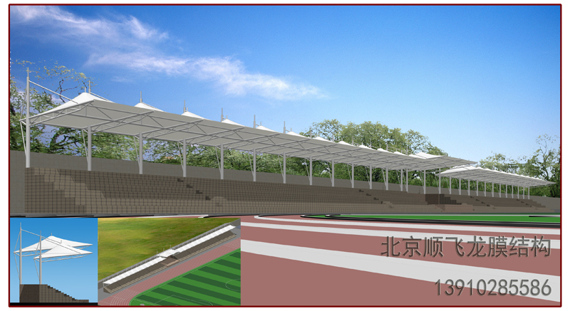 为界,在上弦节点处设置张拉机构对每个膜单元分别施加预张力。膜展开面积约1400.7米,膜材法国法拉利高级自洁PVDF膜材。